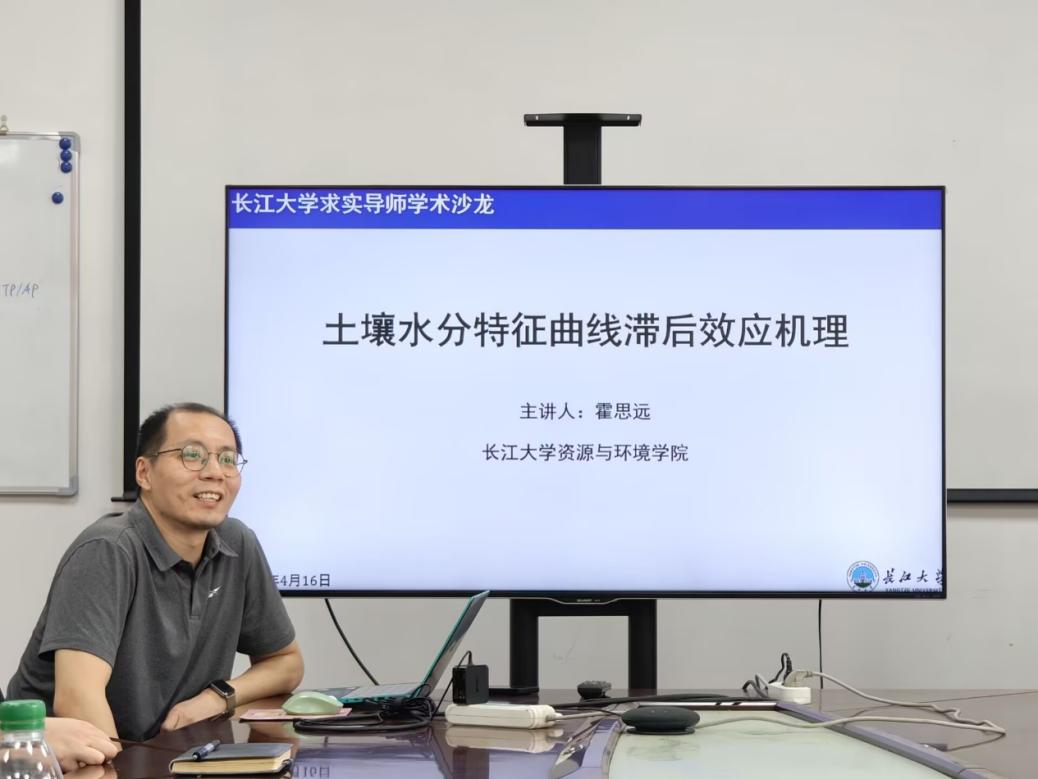 紧接着,霍思远副教授以“土壤水分特征曲线滞后效应机理”为主题,和研究生们分享了土壤水分特征曲线滞后效应的成因机制、影响因素、预测模型等方面内容。霍老师结合团队最新研究成果,深入分析了岩性、干密度、盐度、残膜、生物炭等因素对土壤水分特征曲线滞后效应的影响,相关研究揭示了土壤水分的非线性运移机制。