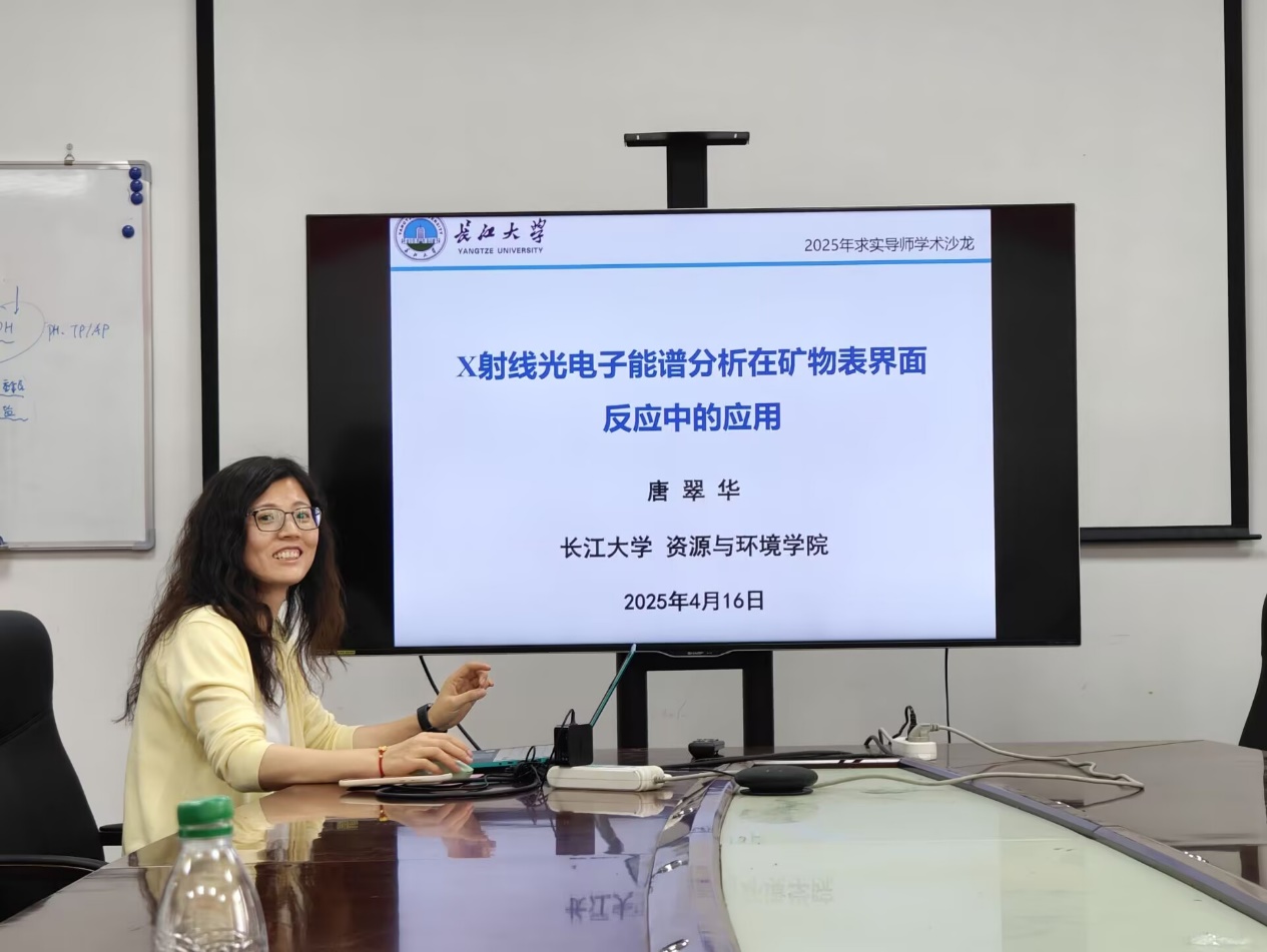 最后,唐翠华副教授以“X射线光电子能谱分析在矿物表界面反应中的应用”为主题,和研究生们深入探讨了XPS技术在测试和分析中应注意的问题及XPS分析在矿物表界面反应中的应用,该研究为解决能源环境领域的重大挑战提供了独特的表征工具。