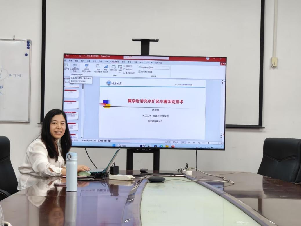 之后,陈彦美副教授以“复杂岩溶充水矿区水害识别技术”为主题介绍了研究团队针对多个典型岩溶充水矿区开展的系列防治水工作。她从复杂岩溶充水矿区的概念入手,为同学们介绍了岩溶充水矿区水文地质条件复杂程度的划分方法。利用福建马坑铁矿、荆襄磷矿大峪口矿段、莲花山矿段三个典型事例,深入介绍矿区充水水源及充水途径的识别方法以及矿井水防治手段,深化了同学们对于岩溶充水矿区水害的认识。