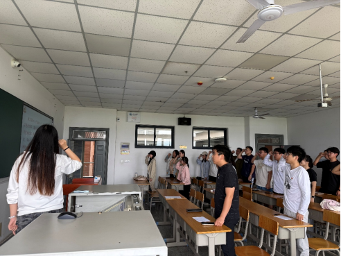 活动在庄严地重温入党誓词中拉开序幕。全体党员面向鲜红党旗,佩戴党员徽章,高举右拳,在肖连同志的领誓下进行宣誓。铿锵有力的誓言回荡在教室中,充分体现了同志们坚守初心、勇担使命的坚定决心。