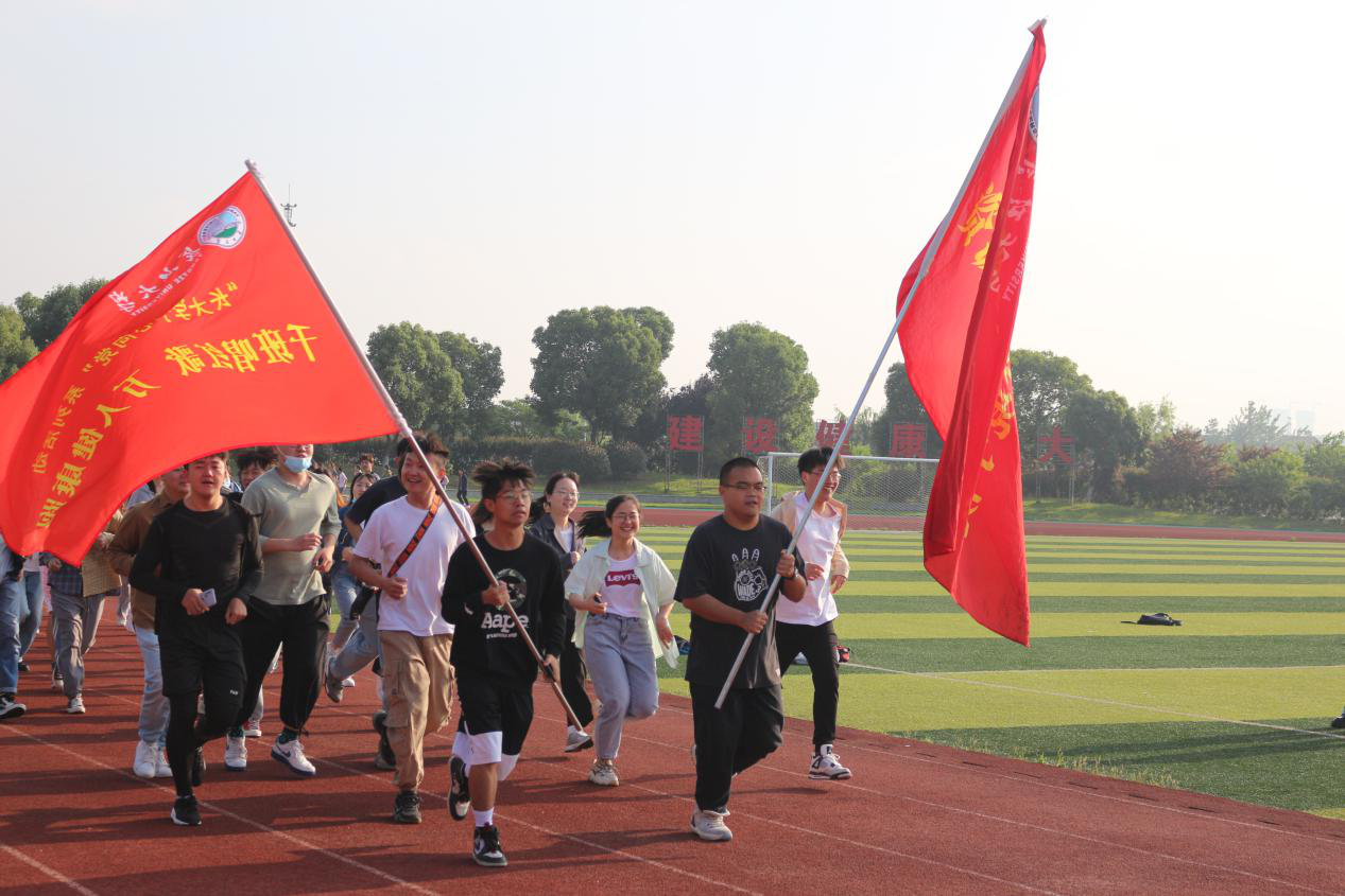 大会第五项,授旗仪式,由地物公司党委副书记丁植磊与永乐高党委副书记进行旗帜的交接,紧接着,永乐高“万人接力跑”仪式正式开始,同学们以班级为单位,井然有序地开始了跑步,伴随着微风,迎着缓缓升起的朝阳,由红旗引领的,是新时代青年们青春的力量;整齐一致的步伐,是他们对责任的担当的展现;气势宏伟的口号,是他们对党的敬仰与热爱,是他们对祖国的热爱。