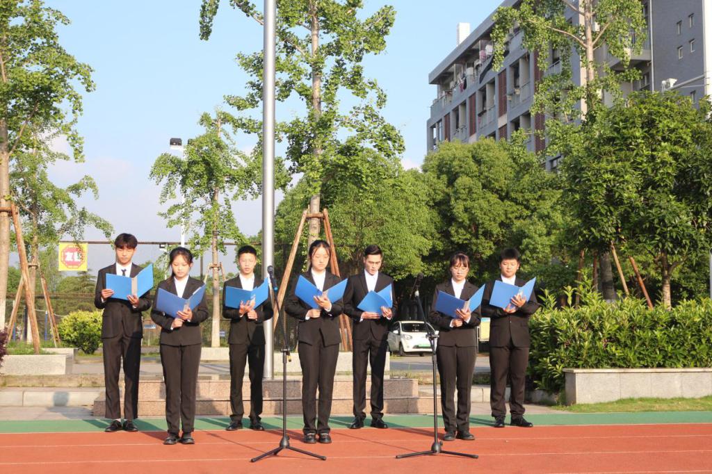 展青春之风,扬国旗之威。升旗仪式在国旗护卫队整齐划一,气宇轩昂的入场下拉开了序幕,伴随着庄严的国歌的响起,全体人员昂首挺胸,向国旗行注目礼,激情澎湃齐唱国歌,展现出永乐高员工对祖国的敬仰与热爱。接着,员工代表刘毅等人进行朗诵《百年芳华,丹心向党》,铿锵有力的朗诵向同学们展示了他们对党的敬仰之心,党是一艘沉稳的帆船,满载着中国人图强的梦想,党是一只喷亮的号角,奏响中国人奋进的凯歌。他们用最热情的话语说到:党啊,我伟大的母亲,您永远在我心中!