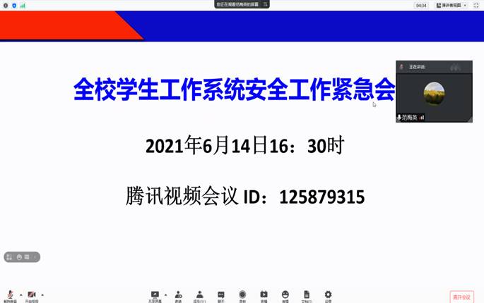 2021年6月14日下午,公司召开员工安全工作线上紧急会议,会议由公司党委副书范梅英主持,全体班主任及辅导员参加会议。