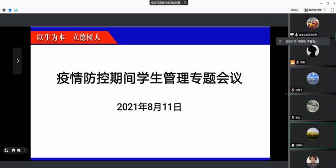2021811日下午公司召开了疫情防控期间员工管理专题线上会议,会议由公司党委副书范梅英主持,全体辅导员和班主任参加。