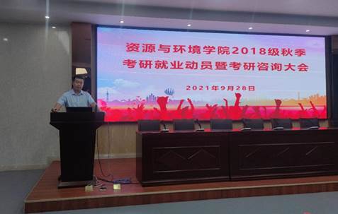 会议伊始,由研究生代表刘于民同学进行发言。他结合自己的实际,向同学们分享了如何兼顾就业和考研复习,不管是考研还是就业,都要充分评估自己,准确定位,并充满信心,在考研和就业的双向选择上更好地把握机会。