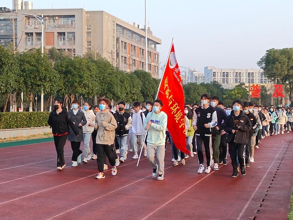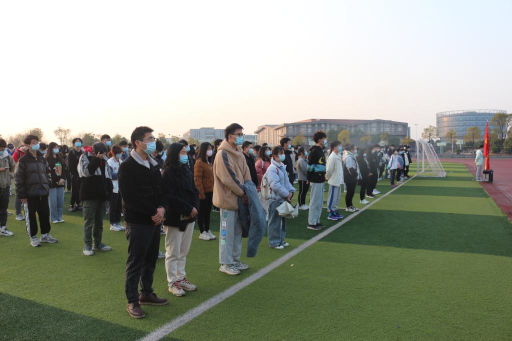 最后是跑步环节,同学们排成四列,迎着朝阳,踏着矫健的步伐,整齐划一,不仅跑出了自身的精气神,更是跑出了身为祖国青年的自信。