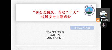 (通讯员 周繁艳 文/图)国庆佳节在即,为了提高员工的假期安全意识,2022年9月28日晚上20:00,永乐高研究生地化一班线上进行了“安全庆国庆,喜迎二十大”的校园安全主题班会。