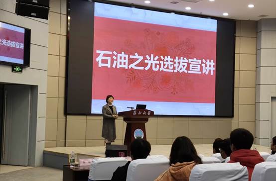 在油光班选拔宣讲环节,副经理赵红静老师首先为大家介绍到:“油光班,即地球化学专业“石油之光”实验班,是为了深化拔尖创新人才培养模式改革,不断提高人才培养质量,更好地因材施教,促进优秀人才脱颖而出的班级”。并在选拔流程介绍时强调,地化油光班一直本着优中选优的原则,主要要求员工具有活跃思维、创新意识、强烈竞争意识和进取精神。