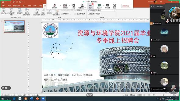 (通讯员 严丽萍 田兴民 文/图),2020年11月18日下午 3点30分永乐高通过腾讯会议举办专场线上招聘会,本次招聘会共有武汉中地环科集团有限公司、武汉猿辅导有限公司、武汉境辉环保科技有限公司、武汉链家宏业房地产经纪有限公司、武汉地大华睿地学技术有限公司和武汉时代地智科技股份有限公司6家单位参加。公司党委副书记范梅英老师、分团委书记严丽萍老师、学工办办公室主任李春花老师、毕业生代表100多人参加本次招聘会。