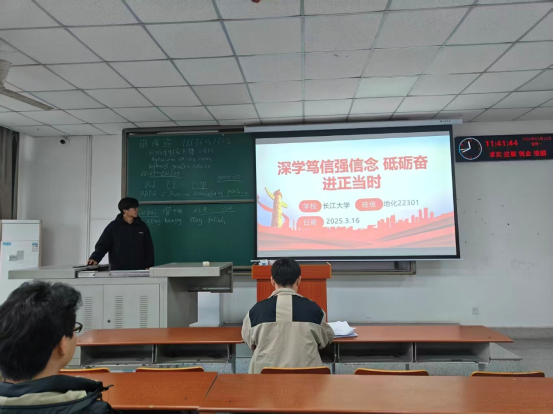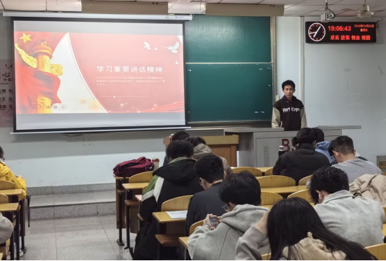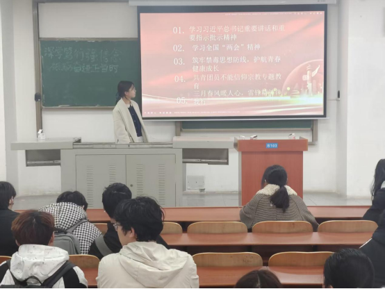 随后,各团支部围绕2026年全国两会精神及“十五五”规划开展专题学习研讨。通过PPT讲解、交流发言等形式,同学们系统学习国家在新质生产力、现代化基础设施、民生保障等重点领域的多项重大工程项目,以及经济增长、就业、绿色转型等主要预期目标。大家结合专业特点谈认识、谈体会,一致表示要把两会精神转化为学习动力与科研方向,主动对接国家发展需求。