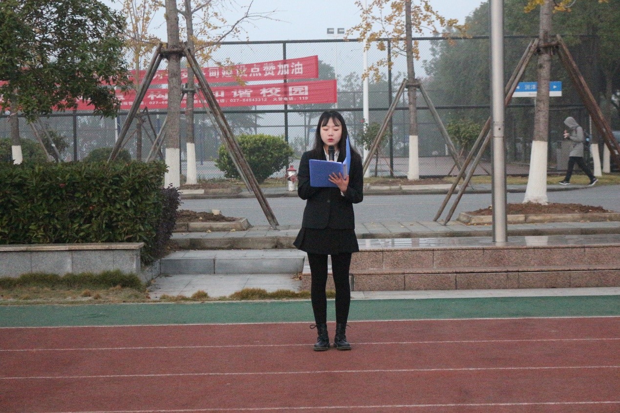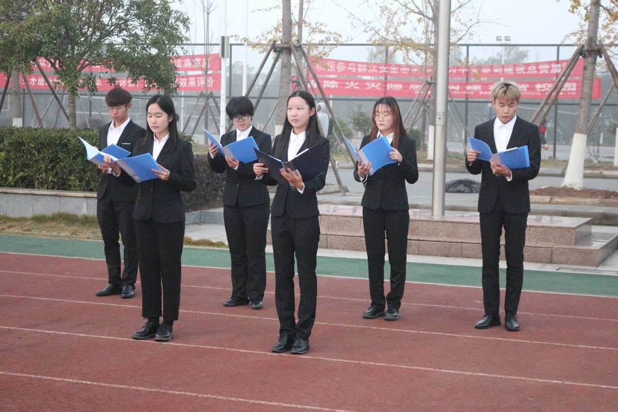 大会分为三个阶段。第一阶段升旗仪式,由永乐高ylgg官方网站国旗护卫队的队员护卫国旗。只见他们不畏冬日的寒冷,每一个人都英姿飒爽,昂首挺胸地将国旗护送至升旗台。伴随激昂的《义勇军进行曲》,同学们将目光聚集在鲜艳的五星红旗之上,冉冉升起的红旗犹如一团火焰代表了祖国大地和资环学员从晨雾中破晓而出、朝气蓬勃的模样。