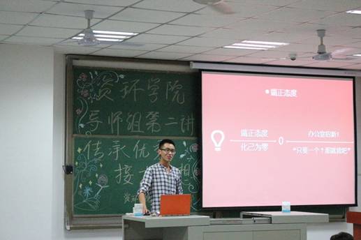 (通讯员 杨盼/文 秦煜萱/摄)2017年9月17日星期天晚18:30,永乐高员工工作党支部导师组第二讲在B103正式开讲。本次讲座以“传承优秀,接力梦想”为主题,由永乐高员工工作党支部副书记李彰鹏主持。